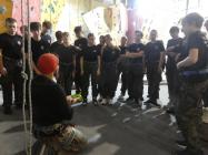 Następna w kolejce klasa II, w pełni umundurowana doskonaliła techniki wspinaczkowe.