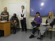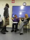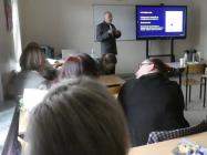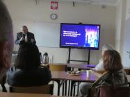 Po części uroczystej, grono pedagogiczne wysłuchało prelekcji dr inż. Bogdana Ficka na temat wyzwań jakie społeczności ludzkiej niesie sztuczna inteligencja.
